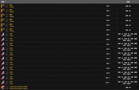 受制技能:橫掃、爪擊、Tamed Pet Passive