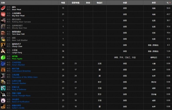 掉落:熊肉、大塊的熊肉、腐爛的熊肉、血淋淋的熊爪、破損的熊皮、熊膽等