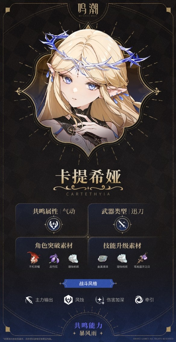 鳴潮卡提希婭怎么培養丨培養材料丨培養建議丨技能介紹丨屬性介紹丨
