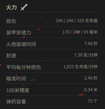裝甲穿透力:170 / 248 / 45 毫米