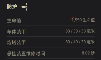 炮塔裝甲:80 / 40 / 30 毫米